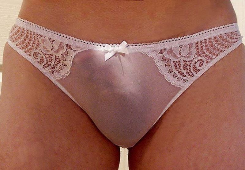 スケスケパンティーです。上から亀頭を弄ると濡れてきます。